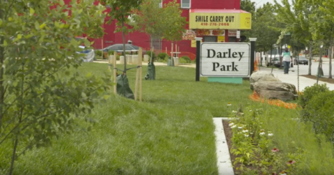 Problem: Post-demolition lots in the Darley Park neighborhood were strewn with trash and had sat for decades unused. Gateway Park is located at the center of the neighborhood and was also plagued with vehicle traffic and compacted soil that contributed to stormwater runoff. It was an eyesore and diminished the neighborhood’s charm and safety.