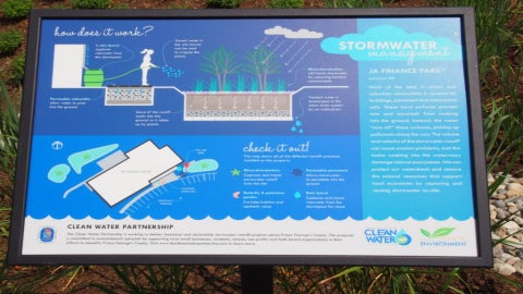Solution: As part of Prince George’s County Clean Water Partnership stormwater effort, the school grounds were retrofitted with permeable sidewalks and bioretention rain gardens planted with species that attract butterflies and hummingbirds. The new features not only control flooding and erosion; they have also beautified the school properties and created learning opportunities for students.